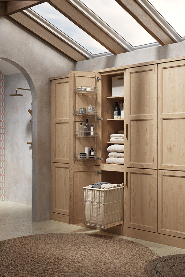 Transform your bathroom into a haven of organization with a sleek chrome door rack and a convenient pull-out hamper featuring a removable cloth liner. Keep everything in its place while adding a touch of modern elegance to your space.